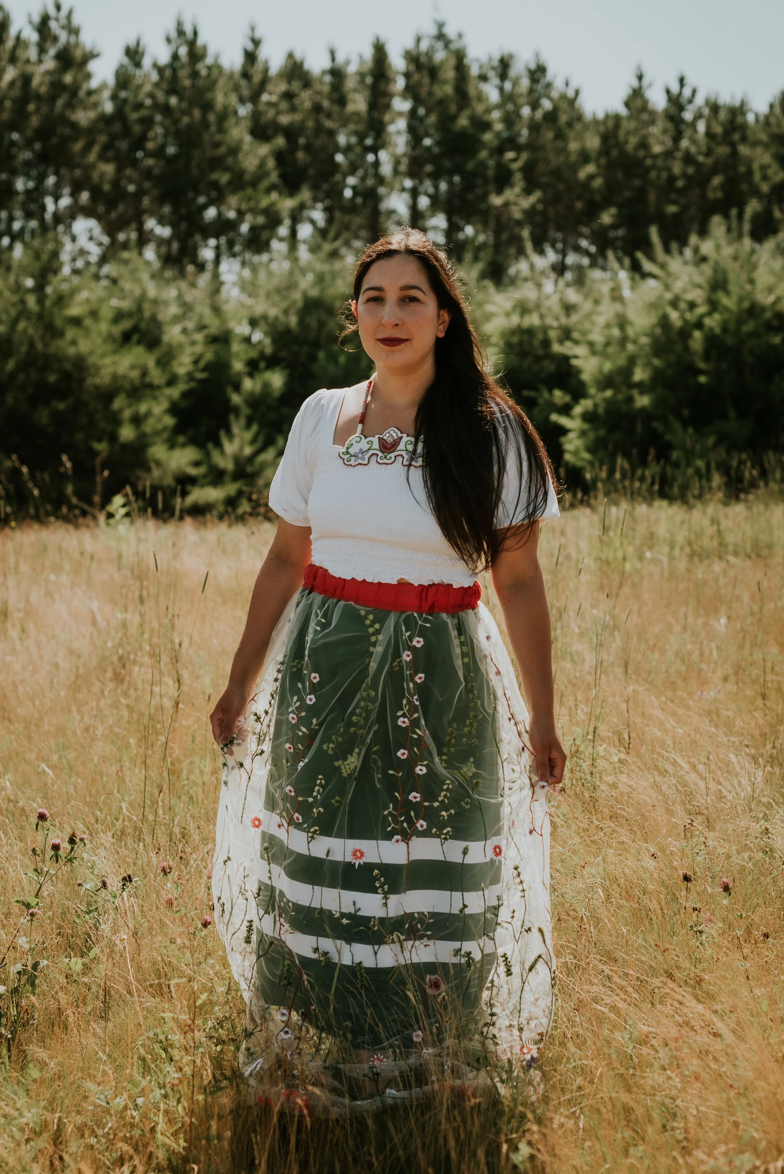 Wasuwegl Nigwegl, loosely translates to mean “growing flowers” in the Mi’gmaq language. My inspiration for this collection was from the natural growth of flowers. As an Indigenous woman, it’s been challenging to grow in uncomfortable spaces and settings that largely centre Western ways of knowing and Eurocentric beauty standards. This collection is an act of resistance against this. A showcase of indigenous perspective, art and beauty.